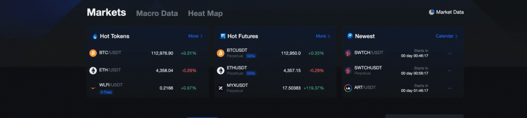 - On your chosen exchange, find the section like “Buy Crypto” or “Trade”.