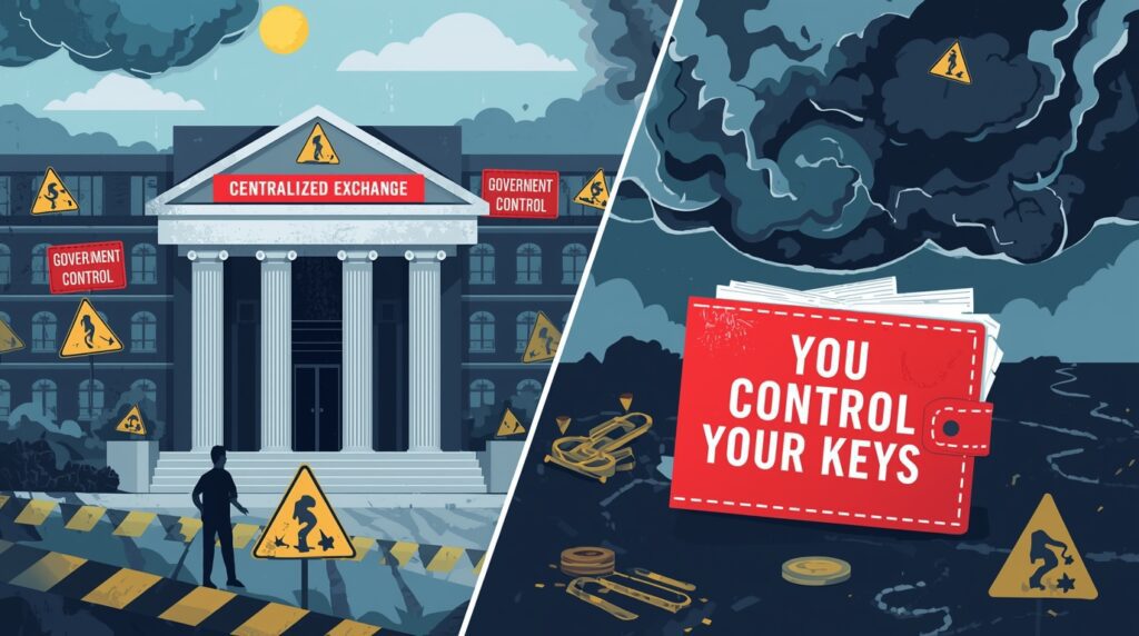 - You don’t control your coins (“Not your keys — not your crypto”)